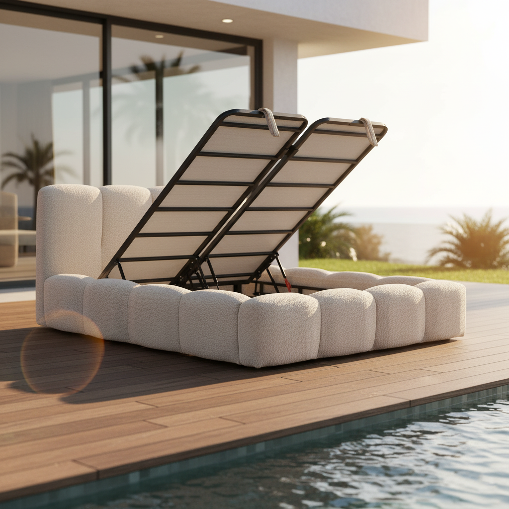 Geniş iç hacmiyle eşyalarınızı kolayca düzenlemenize olanak tanırken, baza altını ferah ve hijyenik tutan yapısı pratik bir kullanım deneyimi sağlar. Yumuşak boucle döşemesi, zarif dikiş detayları ve dolgun formu ile yatak odanıza hem estetik bir bütünlük hem de rahatlatıcı bir huzur alanı kazandırır.