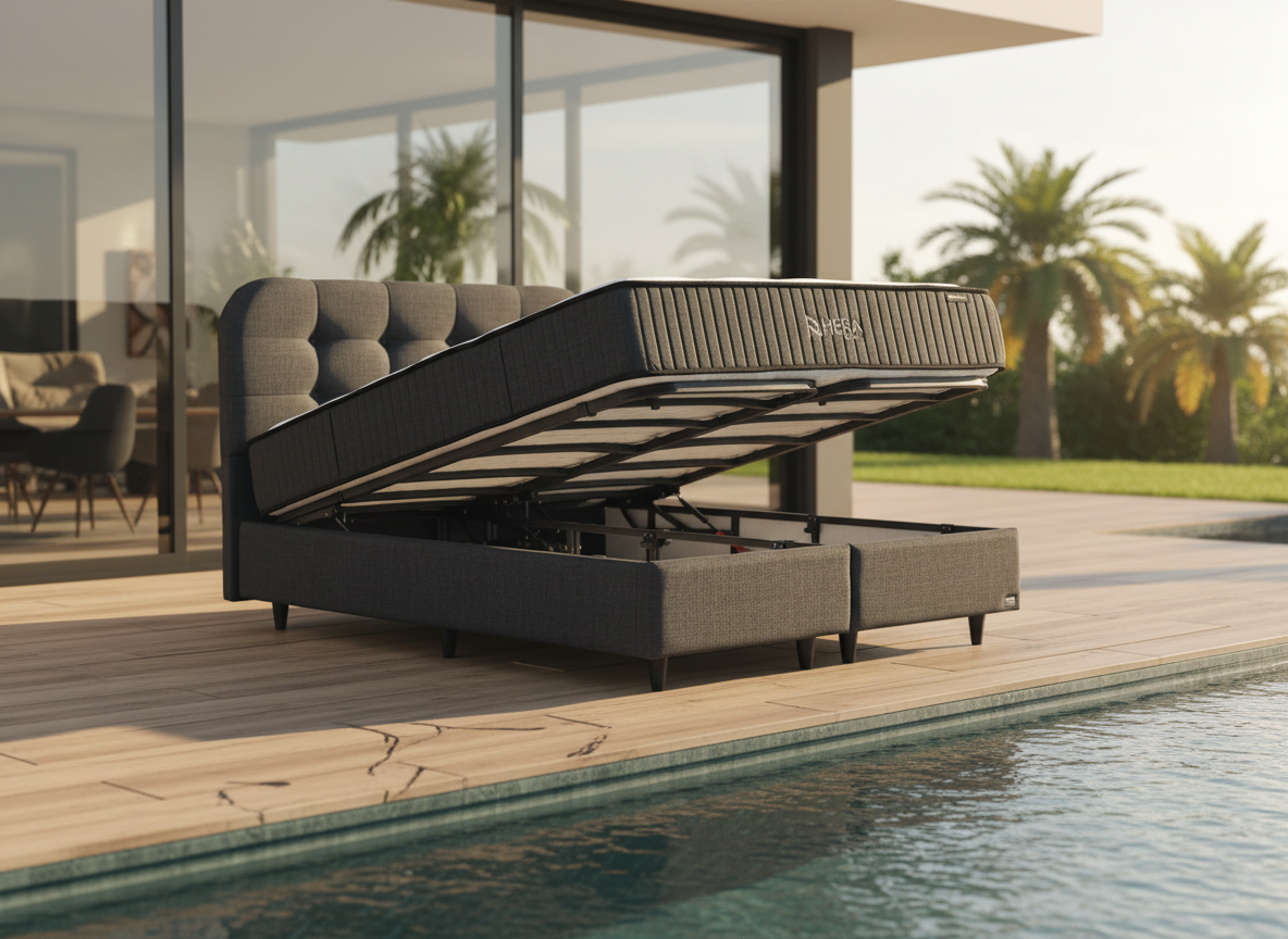 Özel dokulu kumaşı ve altın tonlu ince detaylarıyla Hera Baza, zarafet ile işlevselliği kusursuz biçimde bir araya getirir. Estetik, konfor ve teknolojiyi aynı potada buluşturan bu özel tasarım, Nebilla’nın lüks yaşam anlayışının en özgün yansımasıdır.